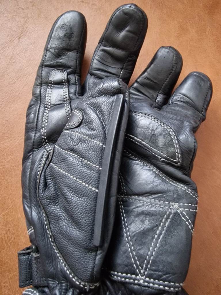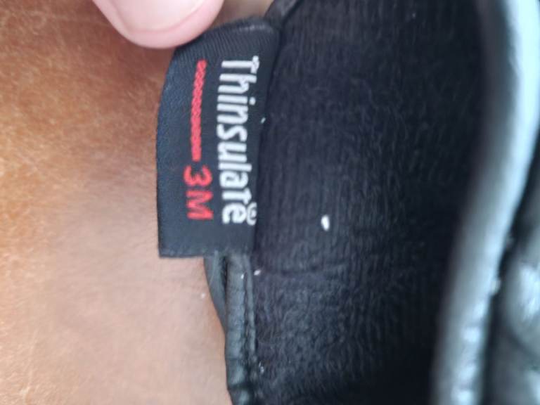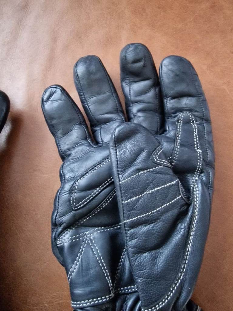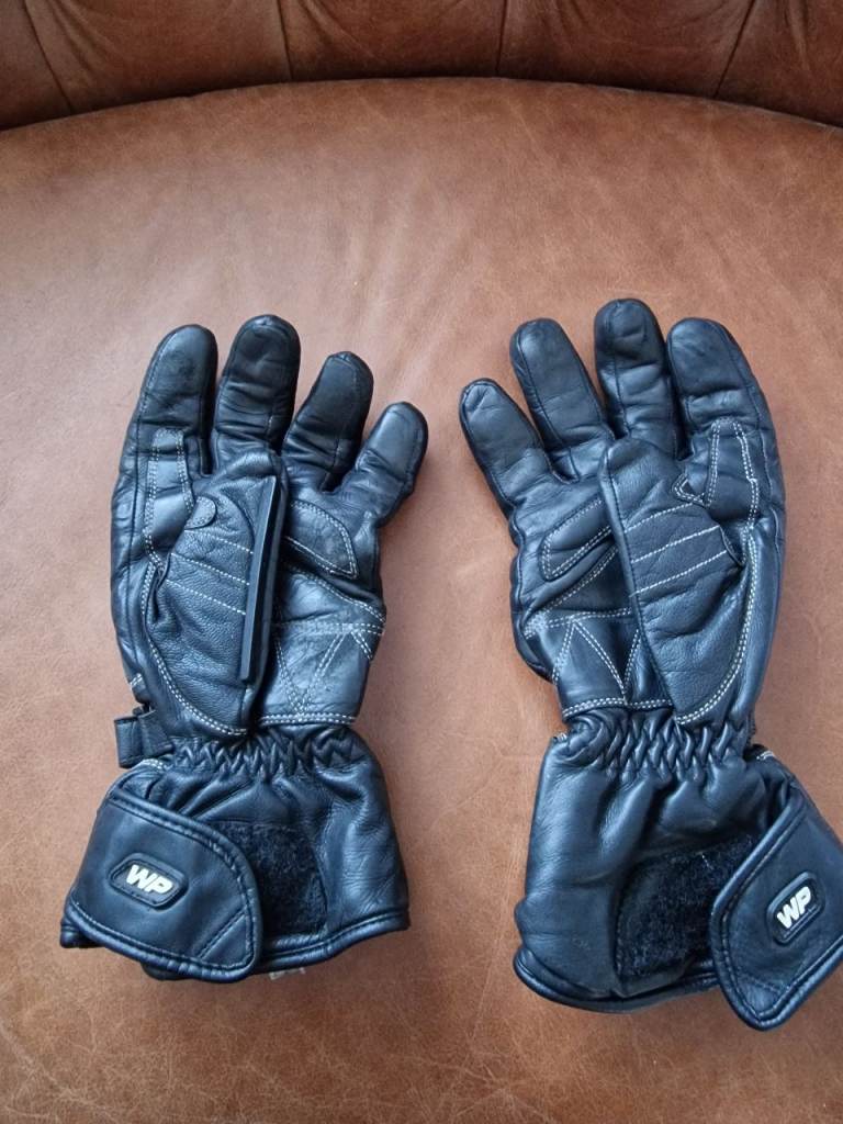 Size L. In good condition, nice and comfortable and warm. Right hand glove incorporates visor wipe blade.