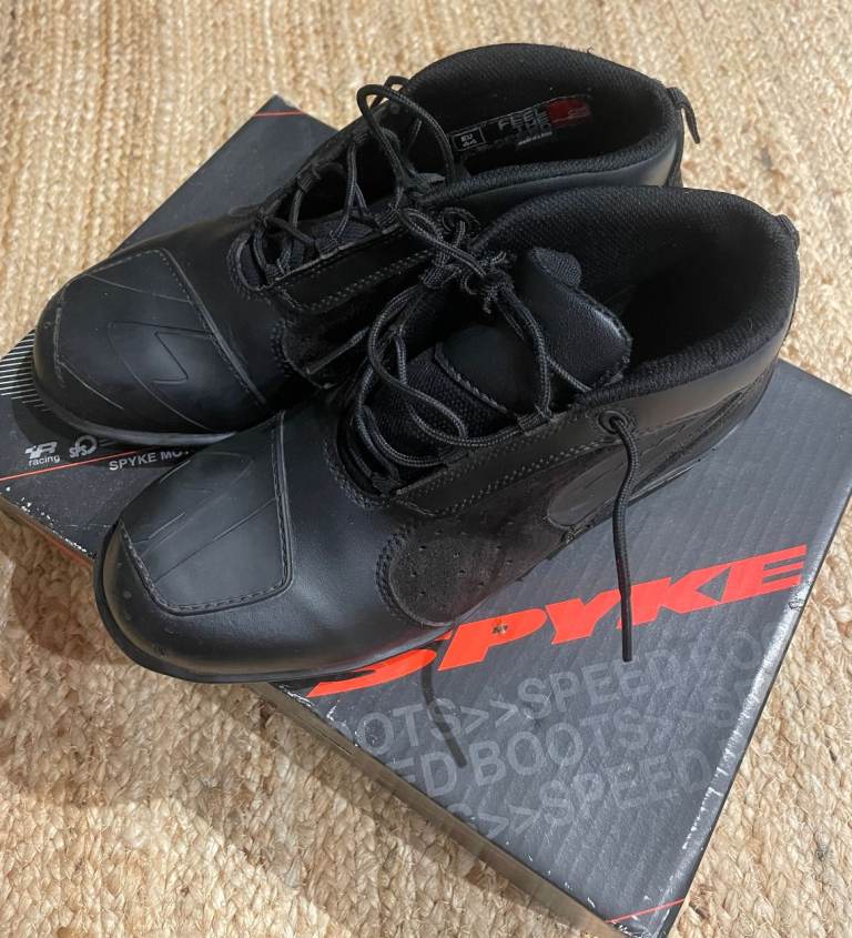 Spyke Motorcycle Boots. Size 44. Ankle Boots. Black Leather and suede.