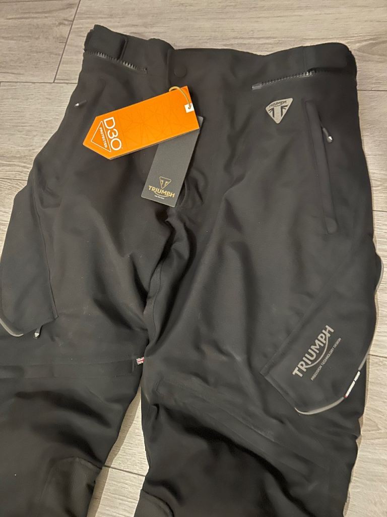 Brand new triumph Cannock motorbike trousers, size 34w excellent quality trousers, bought last year but ended up not buying bike paid £250 last year. £120ovno