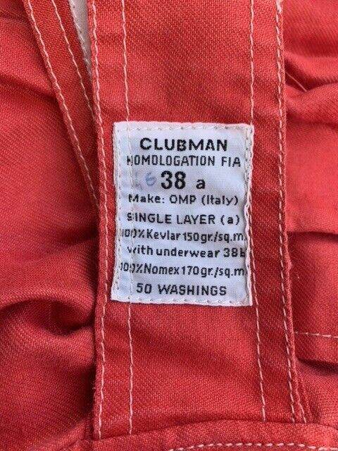 This unused and unworn Made in Italy OMP Clubman Racing Fireproof Overall is constructed with Kevlar, is single layer and is size 38a (has 46 added in biro on the belt label, not sure what it refers to).