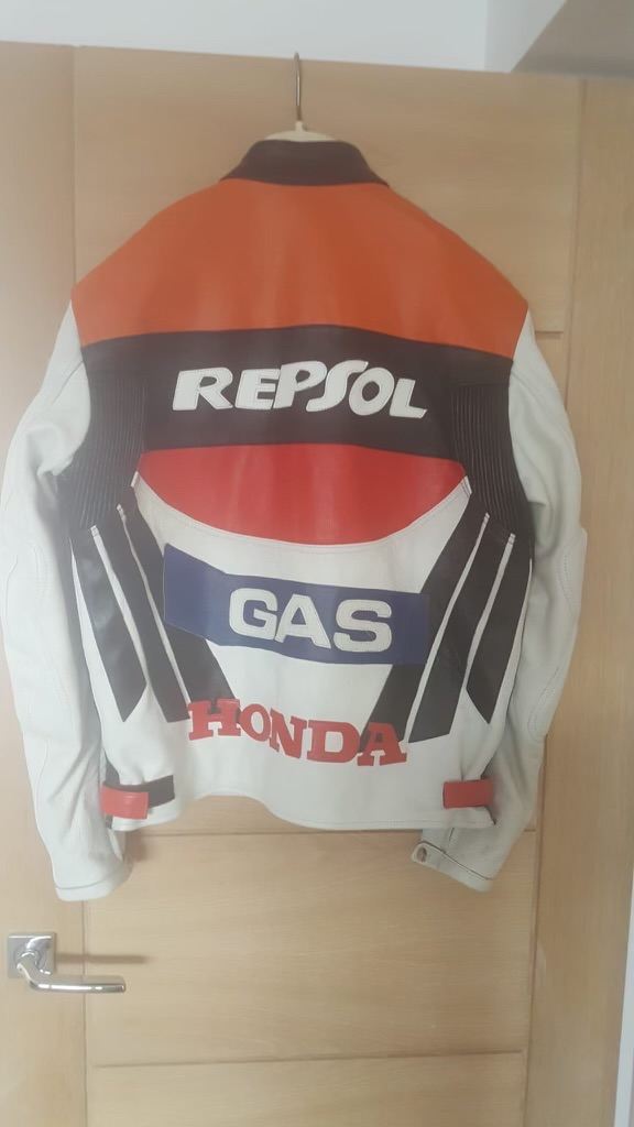 White leather Repsol Motorbike Jacket, size small. in very good condition, hardley worn. Zip works. £100 ono