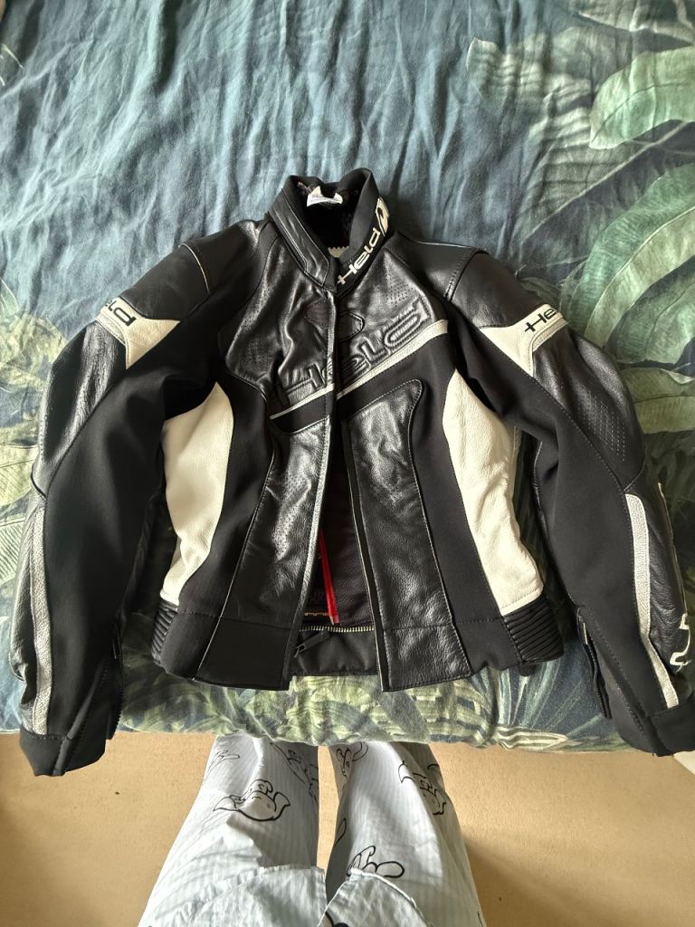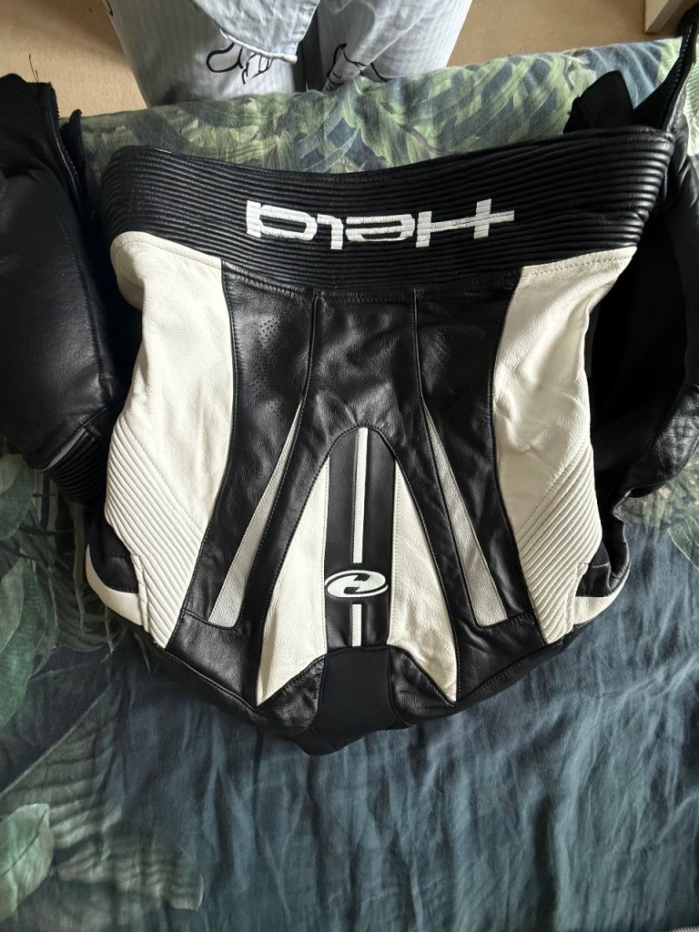 Premium Held two-piece leather motorcycle suit in black and white, size 40 (fits Small / slim Medium). High-quality leather with a sporty style.