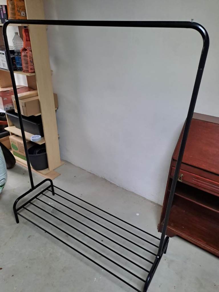 JIUYOTREE Metal Clothes Rail 110 CM Clothing Rack Rail Coat Rail with Bottom Rack for Clothes, Coats, Skirts, Shirts, Sweaters, Black