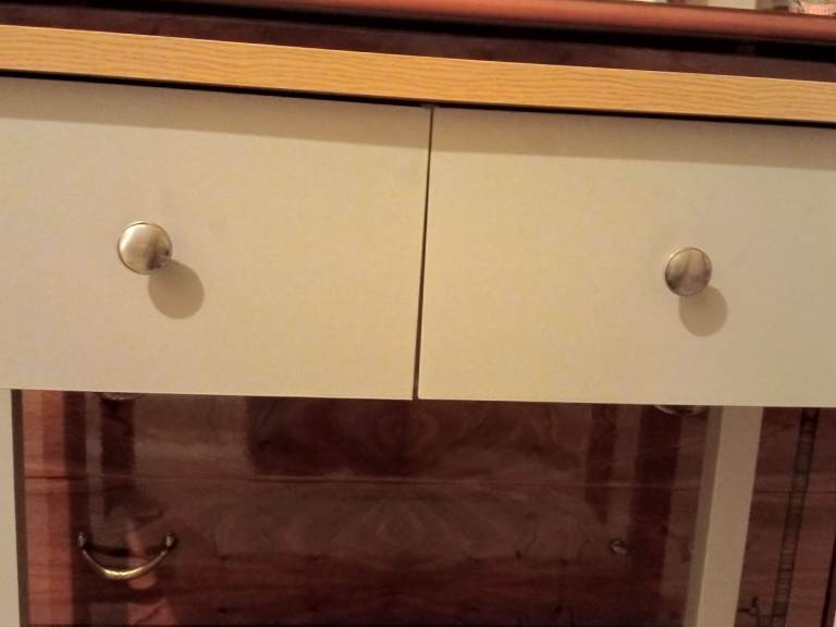 Console table . Grey with oak top. two small drawers. And shelf . Excellent condition.