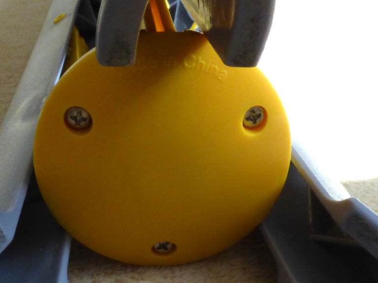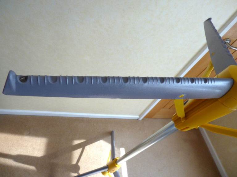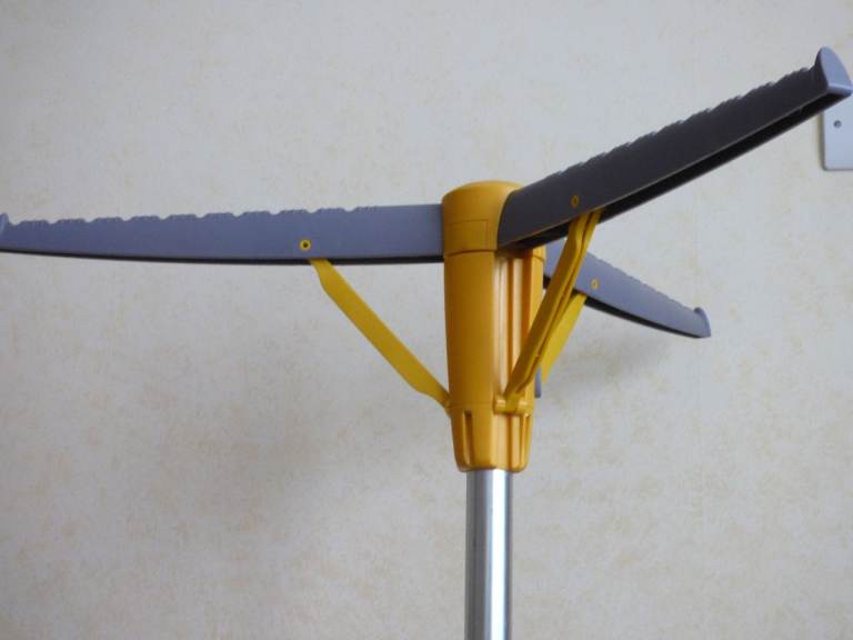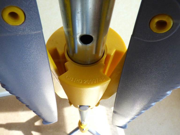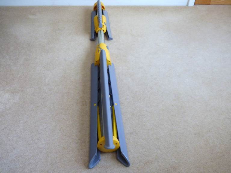 Metal central rod with yellow and grey strong plastic rails and legs.