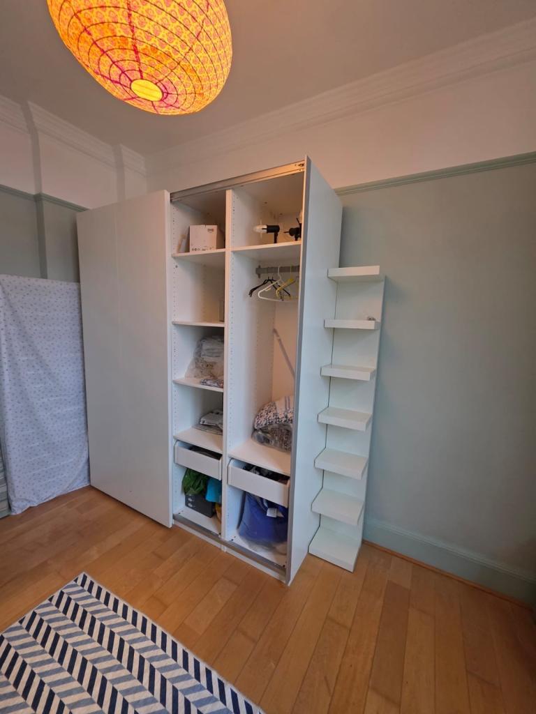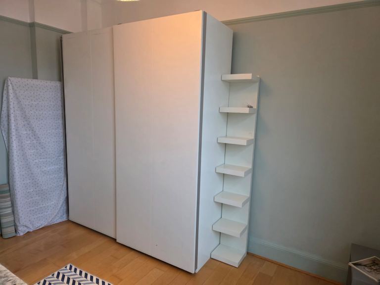 Posting for under a monthIKEA PAX / HASVIK Wardrobe – White, Sliding Doors, 200x66x236 cm + LACK shelf