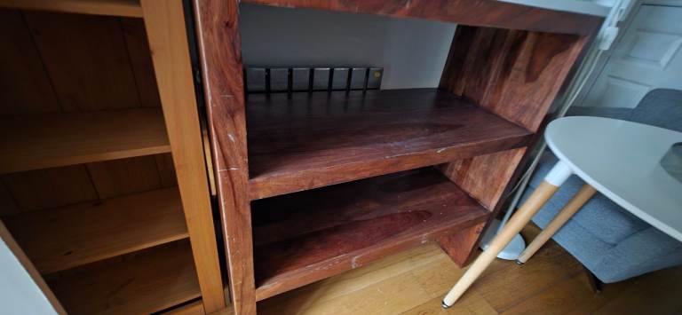 IKEA pax wardrobe with 2x double wardrobe spaces, one with top shelf, clothes rail and 3 draws. Other side has no top shelf for a higher rail and 3 draws.