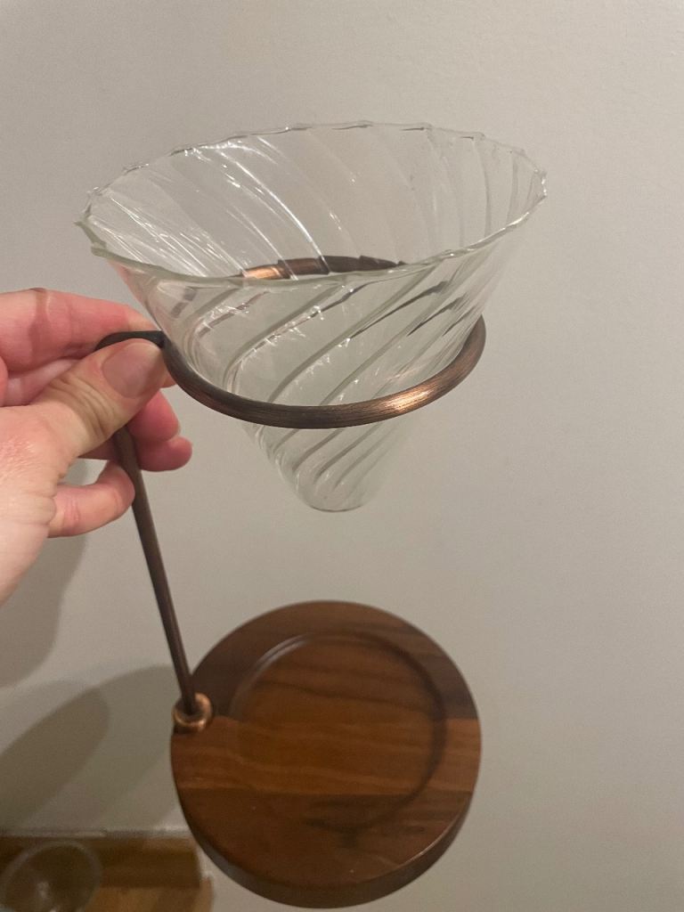 Beautiful glass and wood coffee pour over set up. Excellent condition only used a few times.