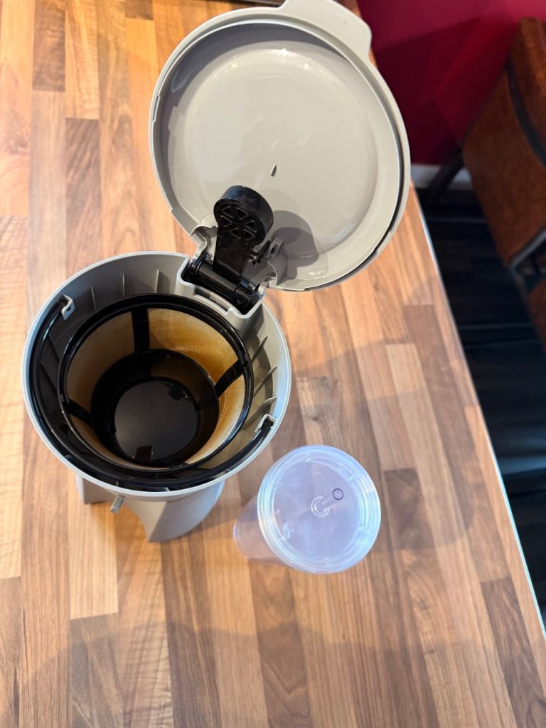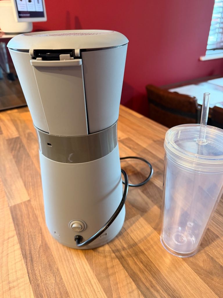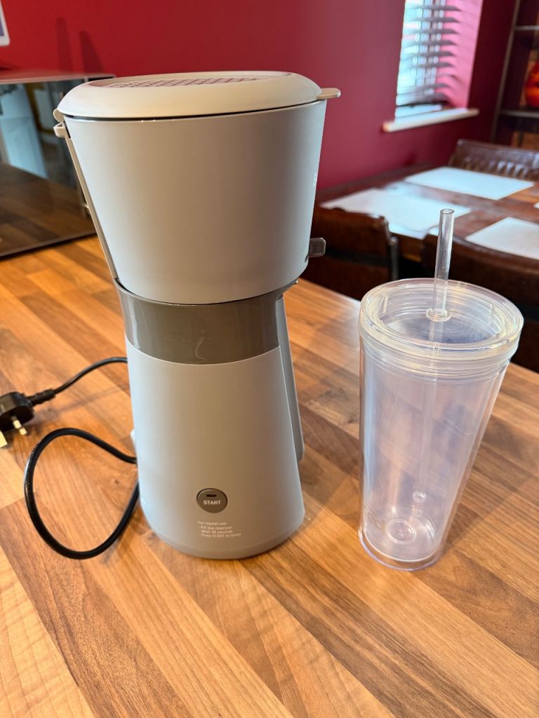 Iced coffee maker brews delicious iced coffee using ground coffee.