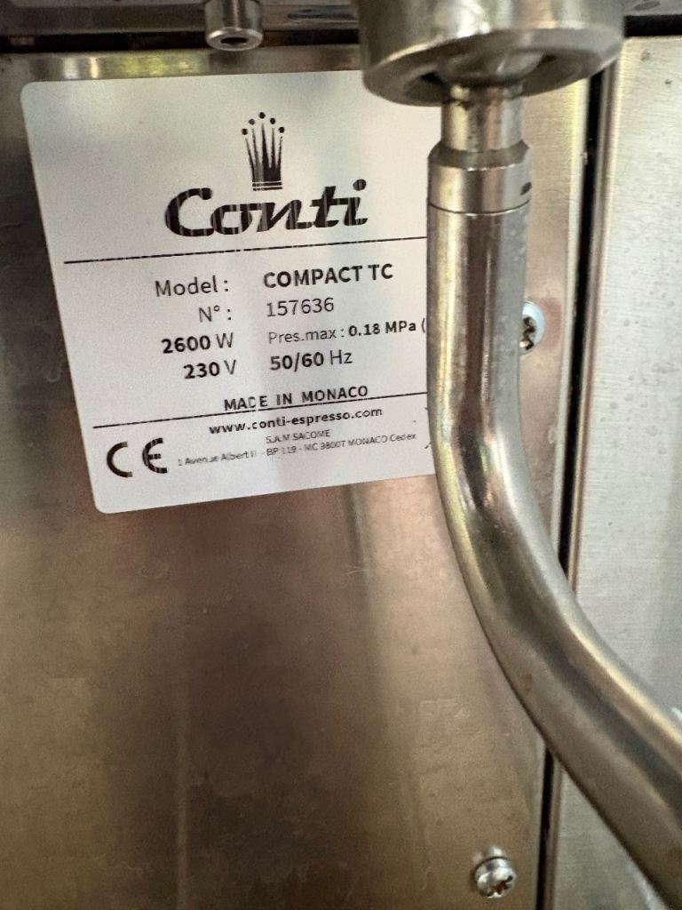 Conti compact 2 used in our coffee shop from 2022-2025 and been used as our home coffee machine since, last serviced September 2024, comes with a 3 pin plug fitted for easy set up, 2 original portafilters, perfect for coffee shop/takeaway hairdressers, shop, home set up etc and can be switched to eco when not in use, priced to sell message with any questions collection only