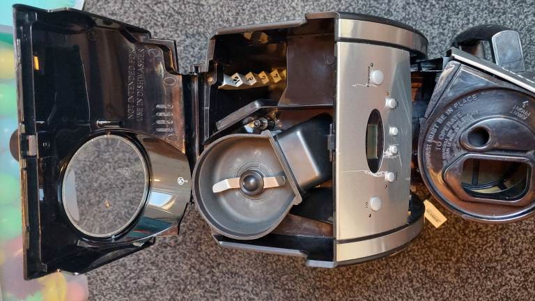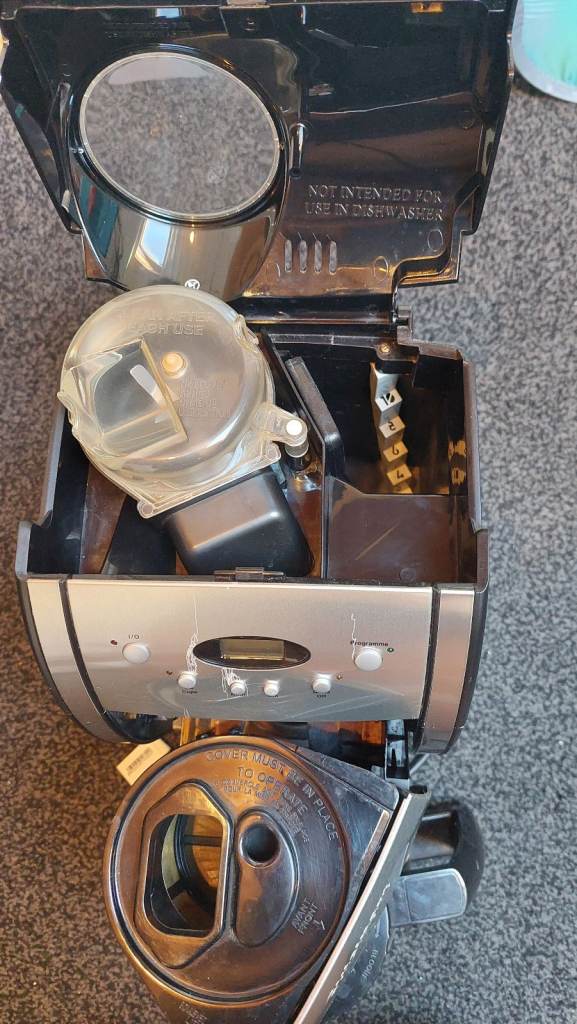 I noticed a few marks around the buttons but I am unsure what caused them as the machine was left unused in a spare room for quite a while. The grinder activates but we always used ground coffee so I am unsure how well it works. There is an option to use the machine for a large batch of coffee or just a couple of cups. You can deactivate the grinder if you are using ground coffee straight.
