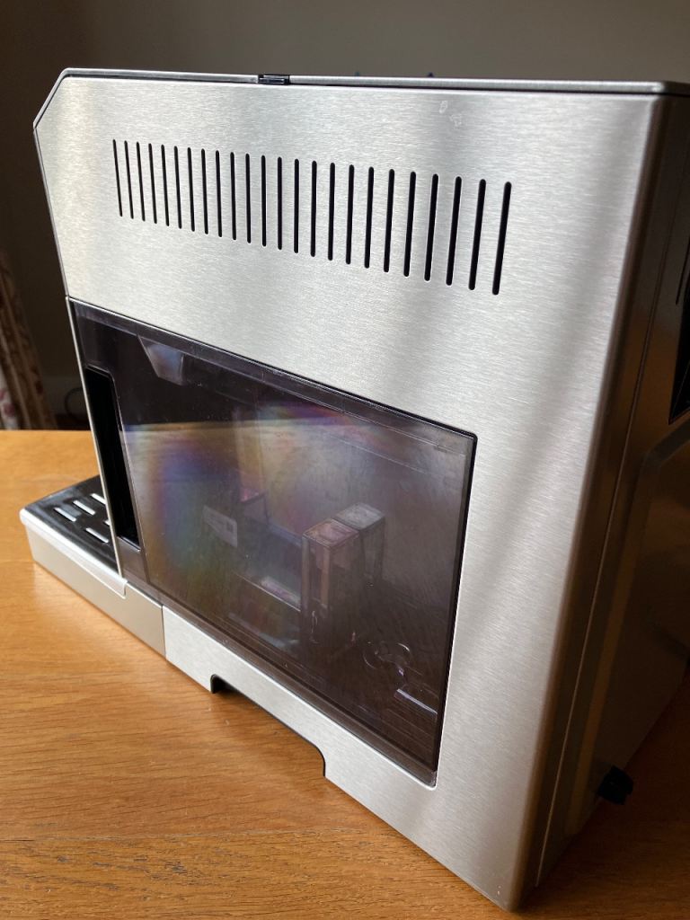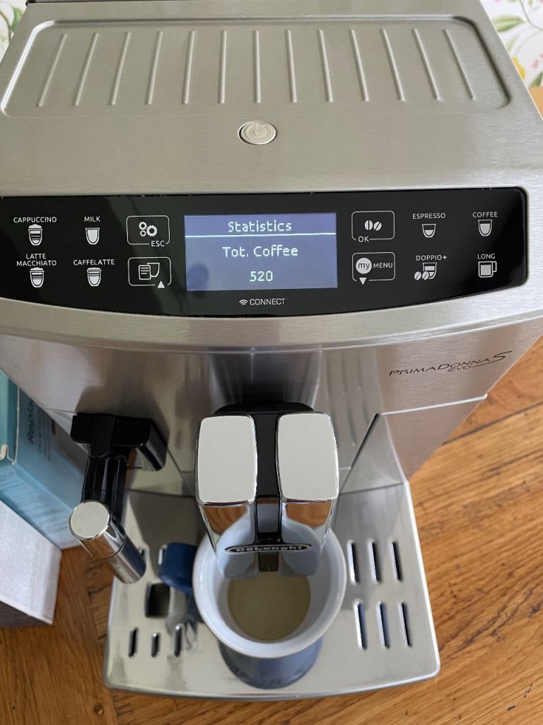 Bluetooth connectivity so you can get your coffee ready for when you need it direct from your phone. Descaled and in good cosmetic and working condition. Comes with milk frother. Barely used and has only made 520 lifetime coffees (see machine stats photo).