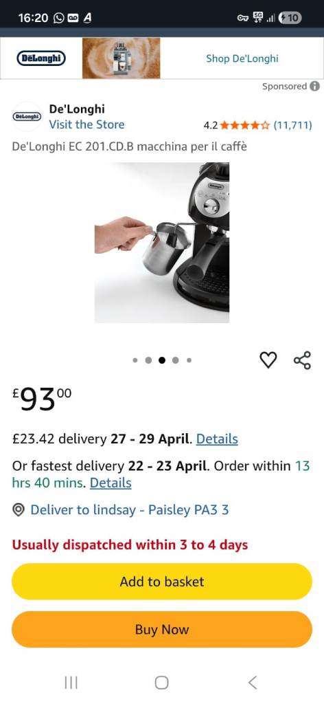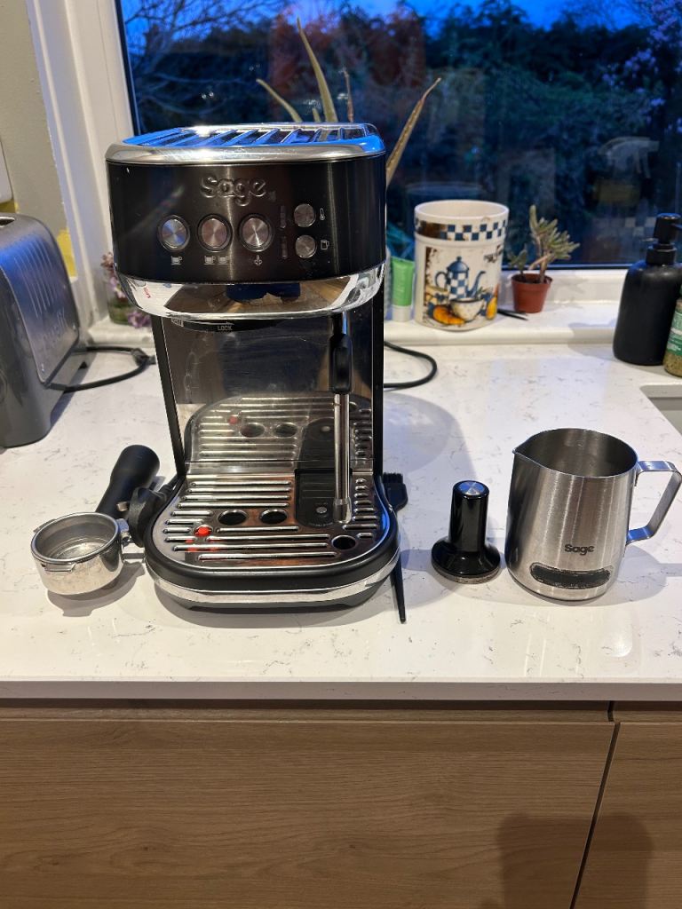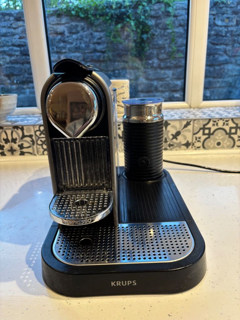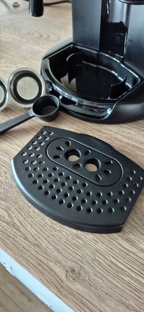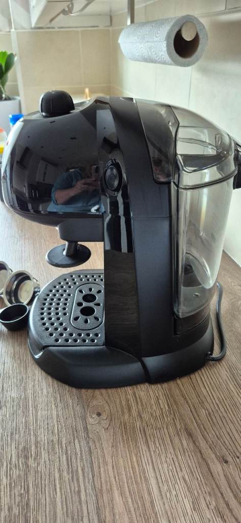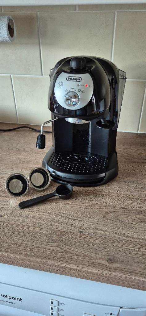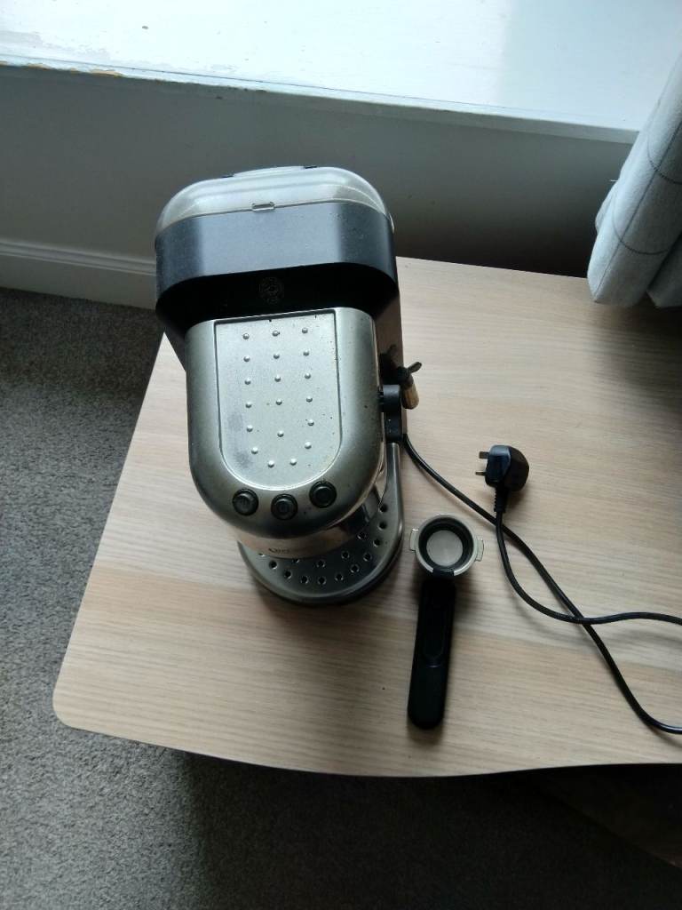 Almost brand new coffee machine. Used twice then put in a cupboard. Excellent condition. No scratches or marks. I have not kept instructions, but I can print them off for you.