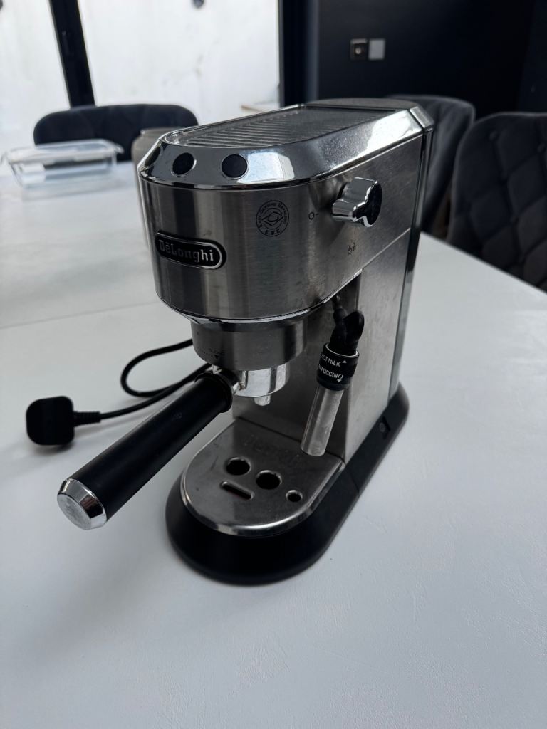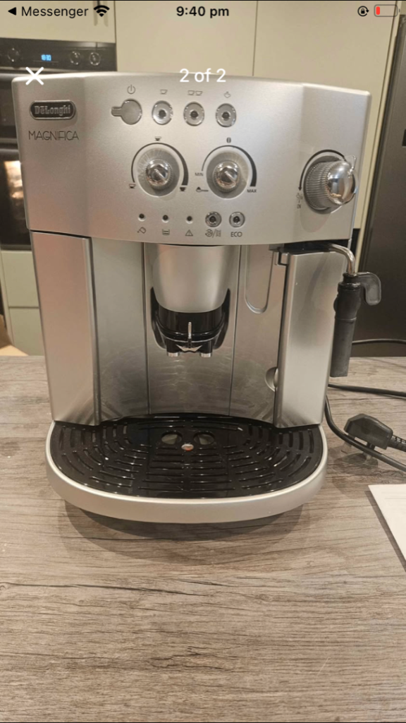 Delonghi coffee machine about 2 years old used a handful of times per week. Still in very good condition. Well maintained and descaled using delonghi descaler. As based in Scotland no hard water has passed through the machine.