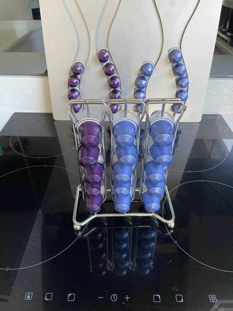 Rare Marco Zaccheo Designer Brushed Aluminium Nespresso Coffee Pod Wall Holder. Holds 40 pods. I am also throwing in a freestanding, countertop 30 pod chrome holder.