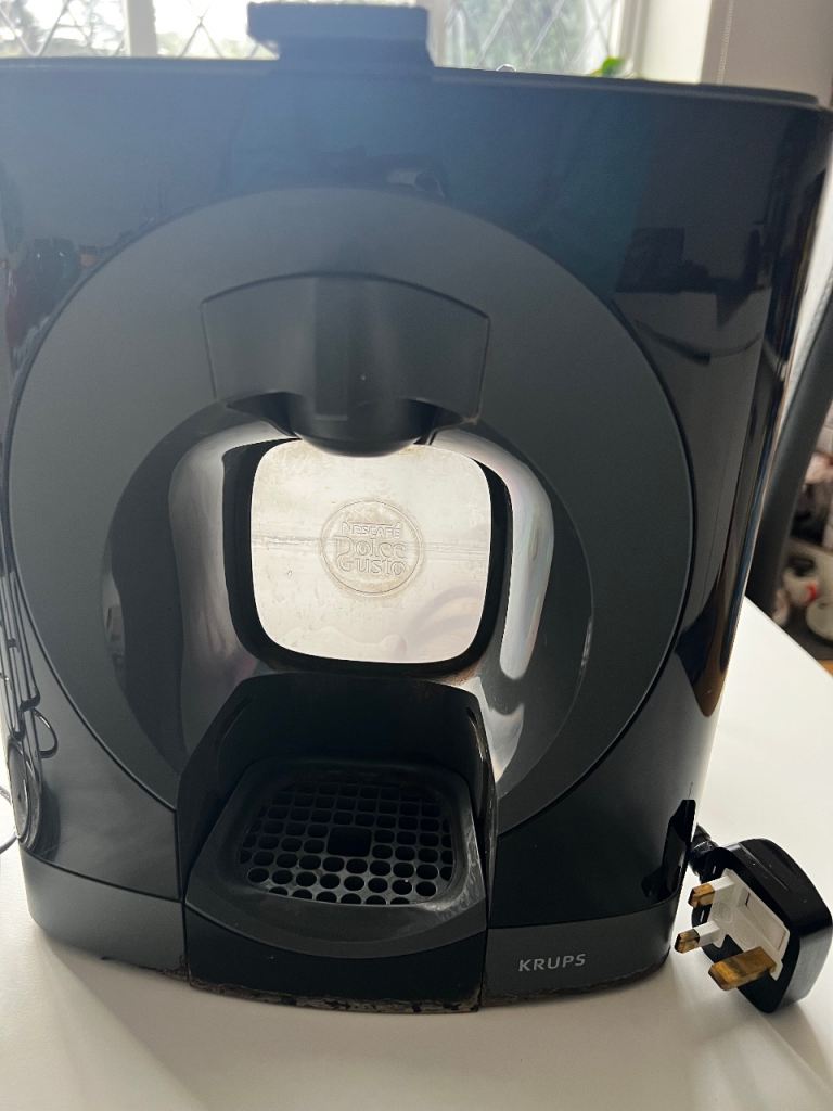 Pre-owned Krups Dolce Gusto coffee machine in good working condition. The machine has been used and remains fully functional, producing a wide range of drinks from strong espressos to creamy lattes and hot chocolate.