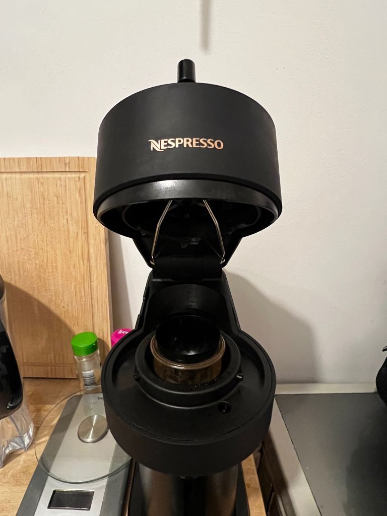Nespresso Vertuo machine (black), great for coffee & espresso. Works perfectly.