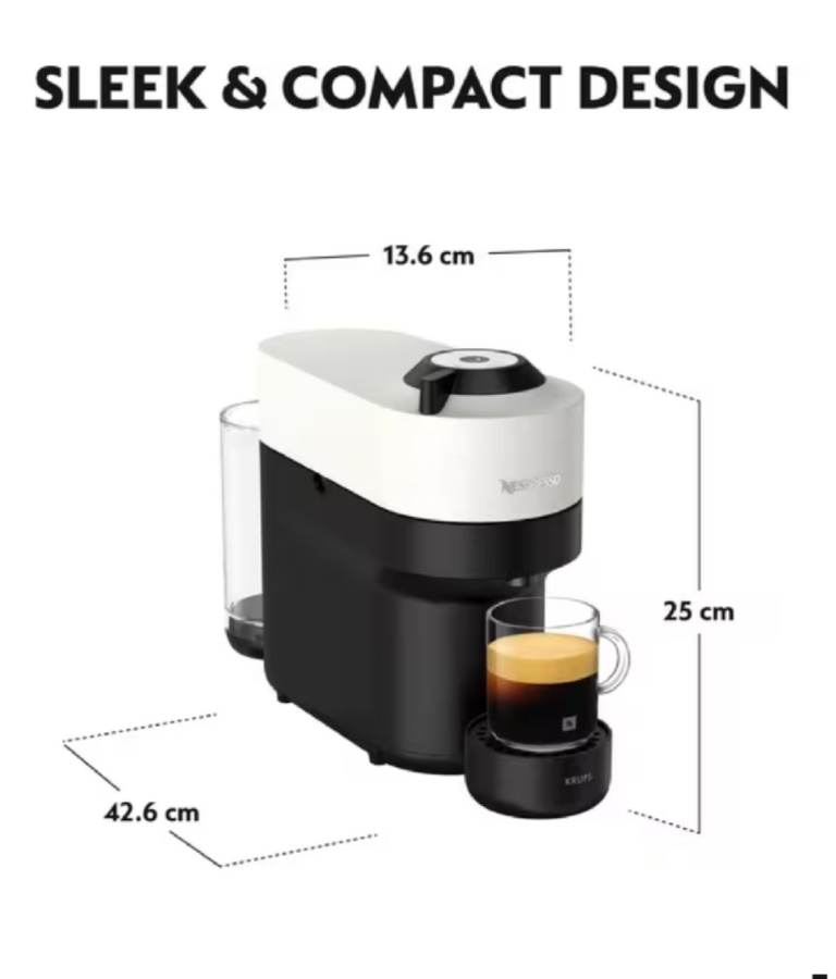 Keeping a low profile at 25cm, the Vertuo Pop may be a sleek, compact piece of kit, but under the burst of colour sits some smart tech. Reading your coffee capsule’s unique code, it automatically adapts all brewing parameters —delivering Vertuo’s signature crema, smooth taste, and full flavour at the touch of a button. From espresso to mug, you can choose from four cup sizes in a wide variety of blends. Made from 35% recycled plastics and top energy efficient rated. It uses Vertuo coffee pods made of infinitely and easily recyclable aluminum.