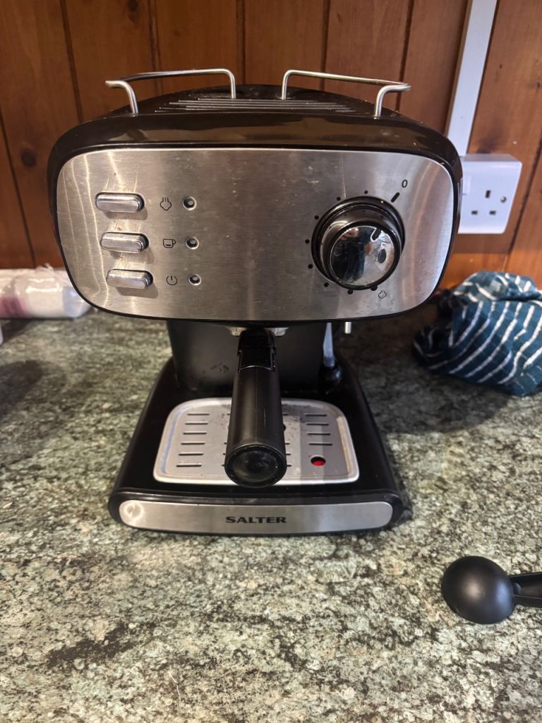 A good coffee machine ideal for home use. Comes with tamper and milk jug