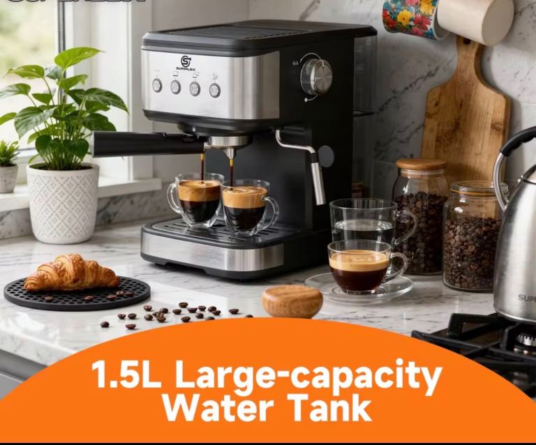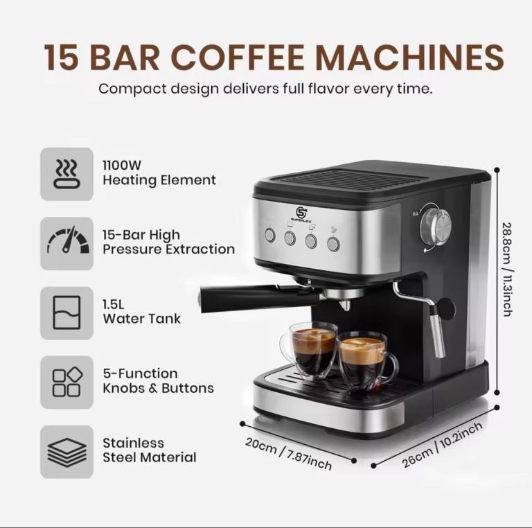 • Generous Water Tank: With a 1.5L water tank, it is perfectly suited for home use or a small office setting, catering to various coffee serving needs.