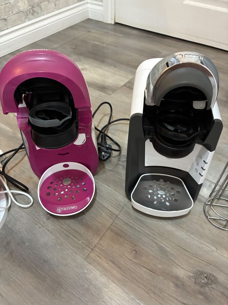 2 tassimos only one has water disc lost the other one also have pod holder.slush puppy machine also.theres hot choc pods unopened says 10/25 it is only powder so cant see it being an issue can have them if wanted cheers
