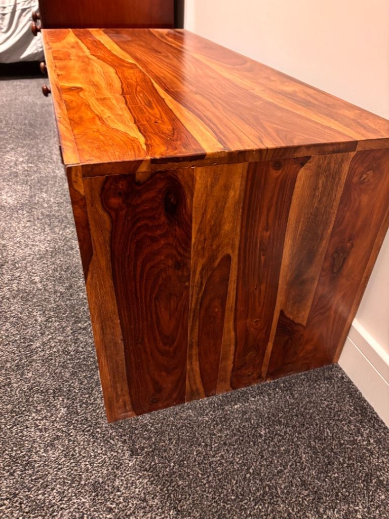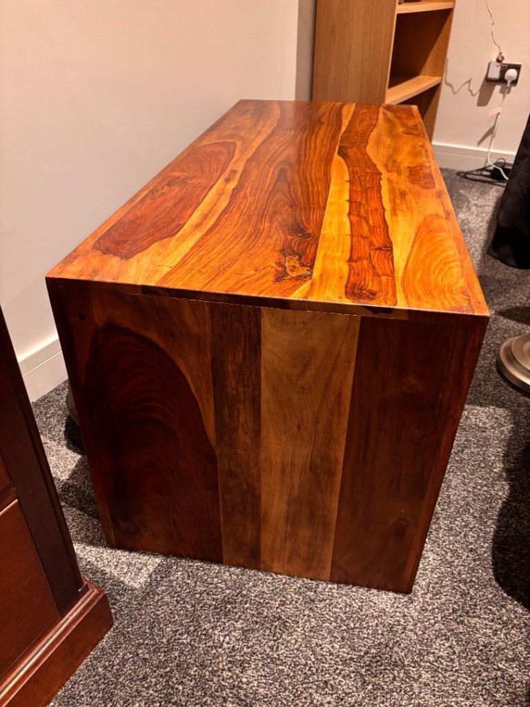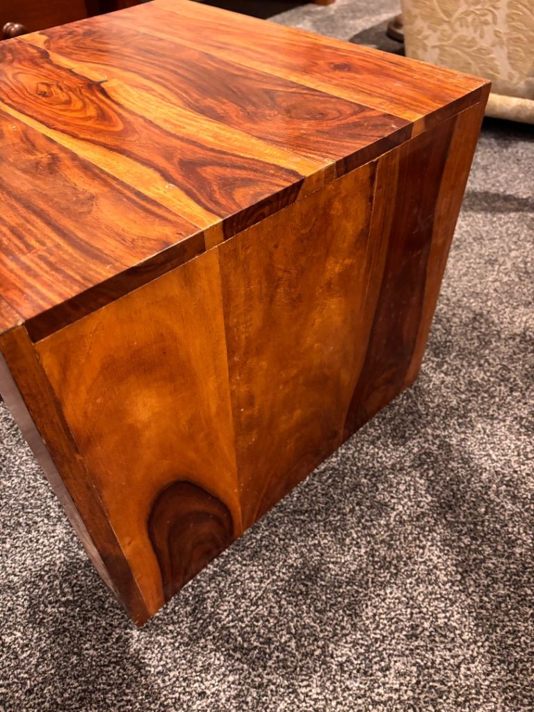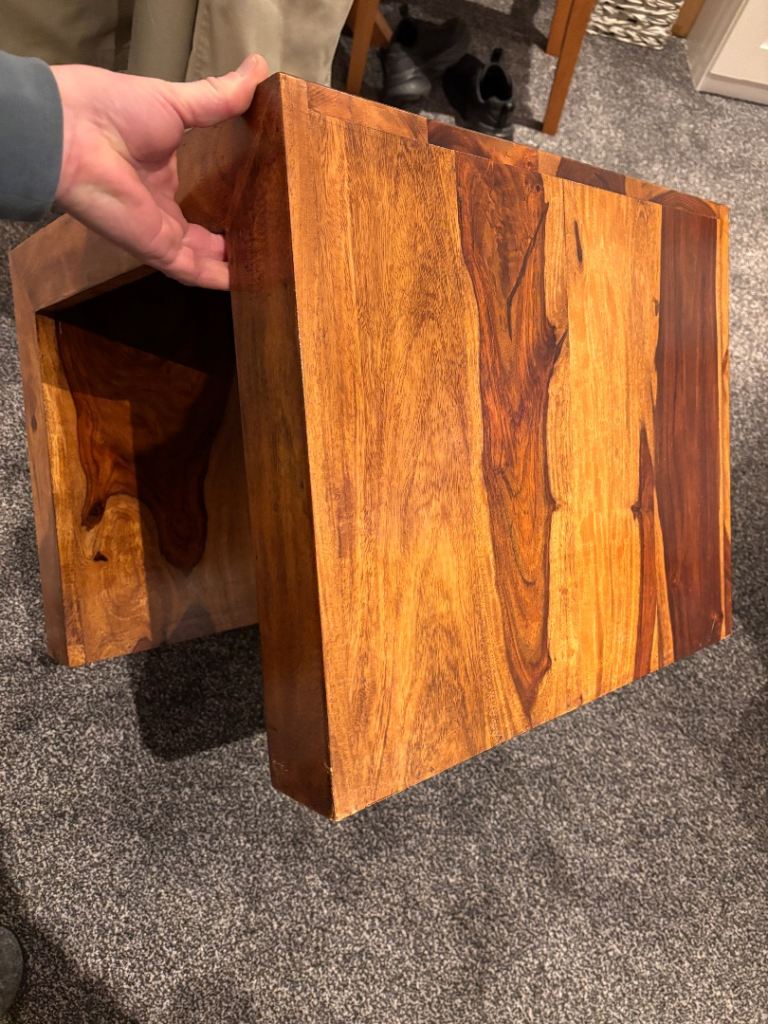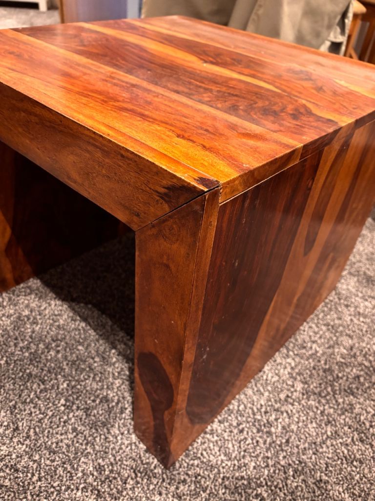 Beautiful set of solid mango wood nest tables, perfect for adding warmth and style to any living room. These are used but well looked after, with only light signs of wear that add to their natural charm.