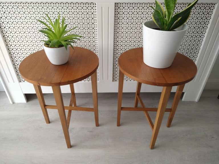2 x Vintage Mid Century Folding Plant Stands / Side / End / Lamp / Bedside / Table