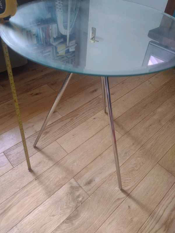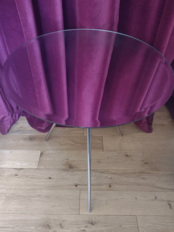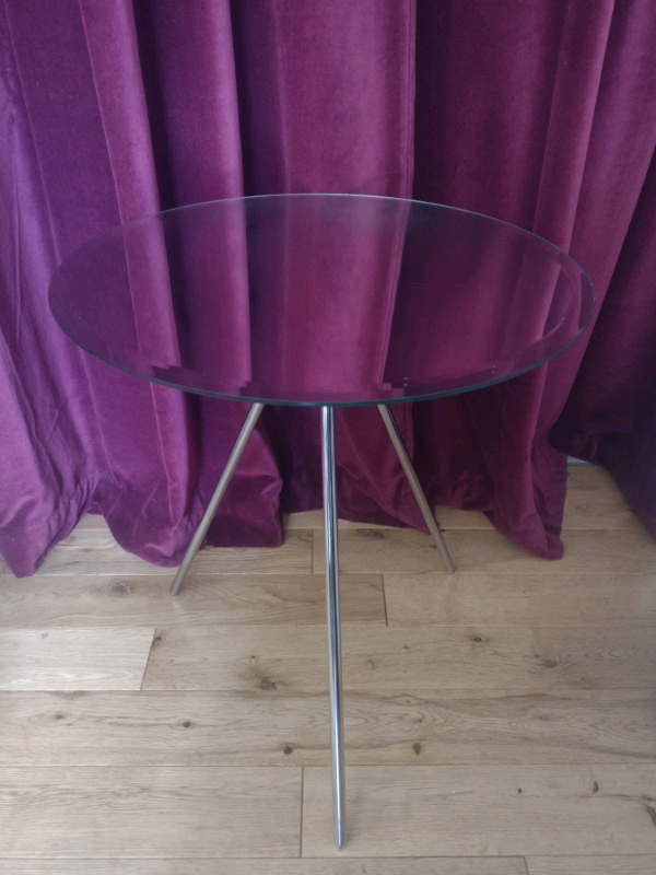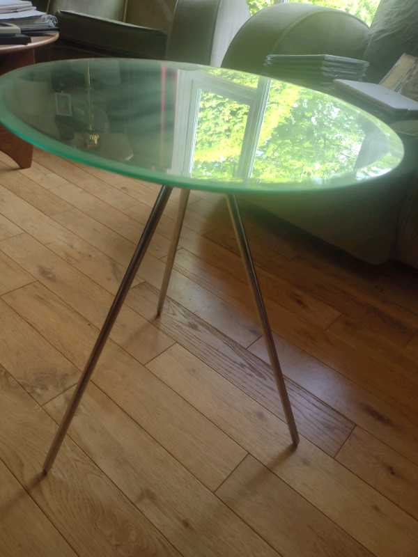 Coffee/Tea Modern 3 Legged small table. Legs unscrew. Mirrored surface used but good condition.