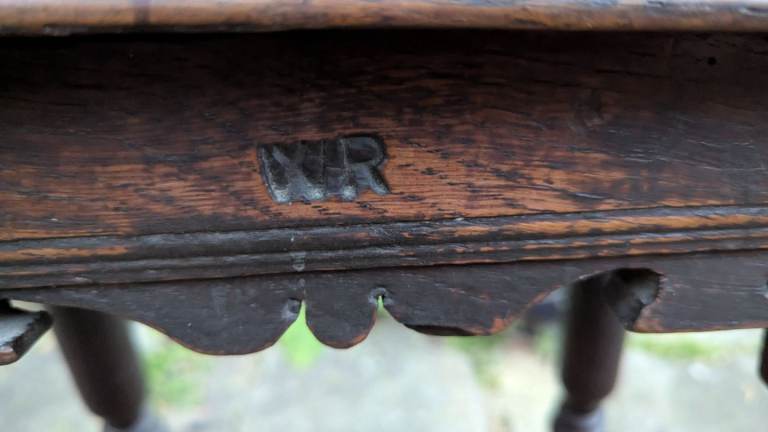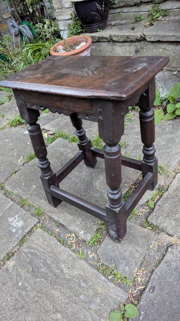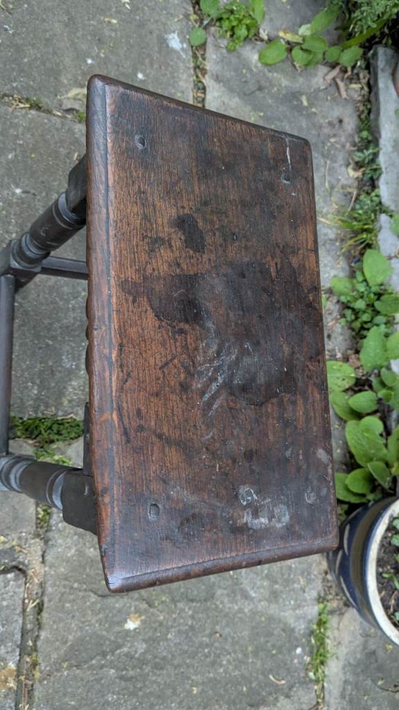 Antique 17th Century Oak Joint Coffin Stool with Owners Initials 1600s Furniture