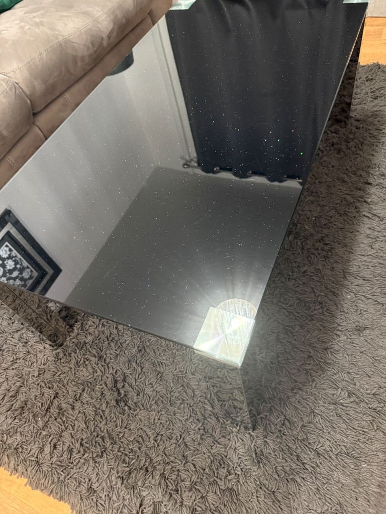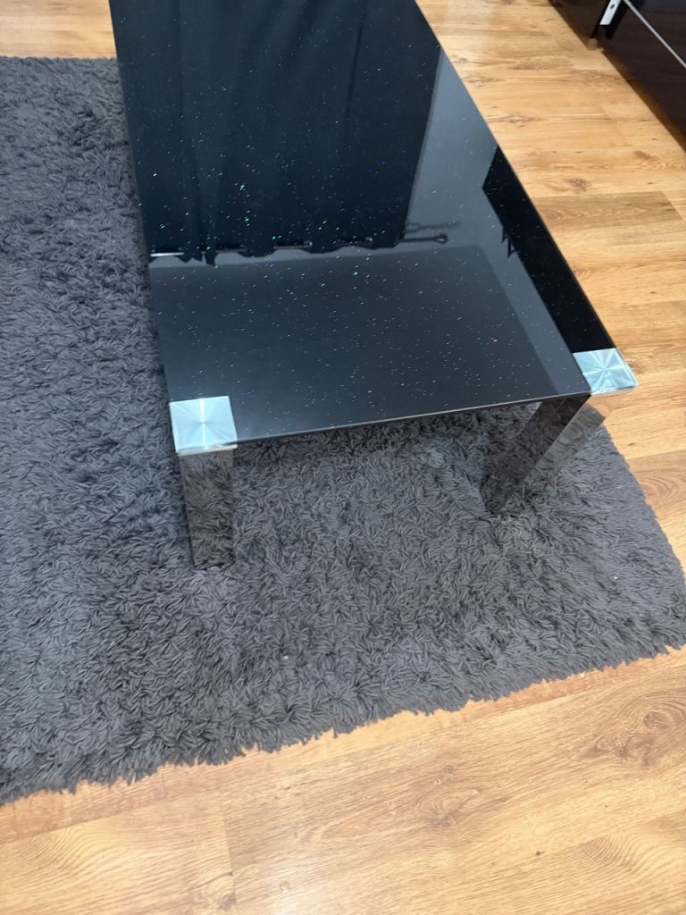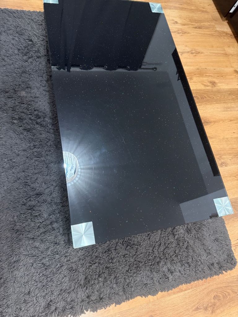 The Black Sparkle Glass Coffee Table from Sofology is a stylish and modern addition to any living room. Paid 250£ at the time.