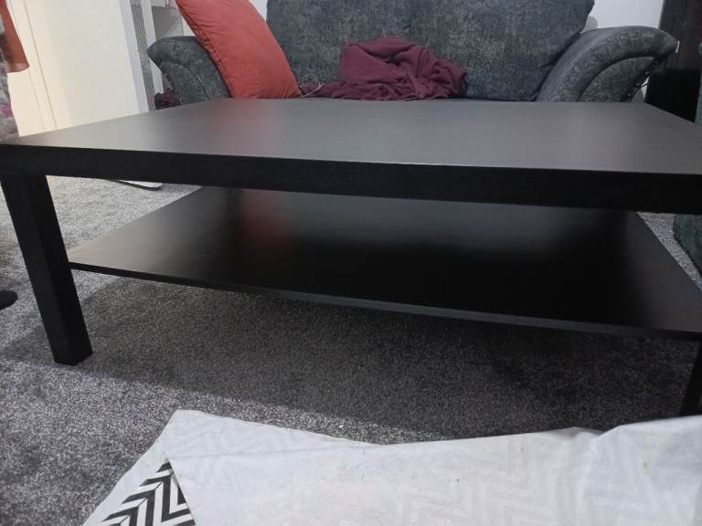 Posting for under a monthBlack Wooden Coffee Table with Shelf – Good Condition