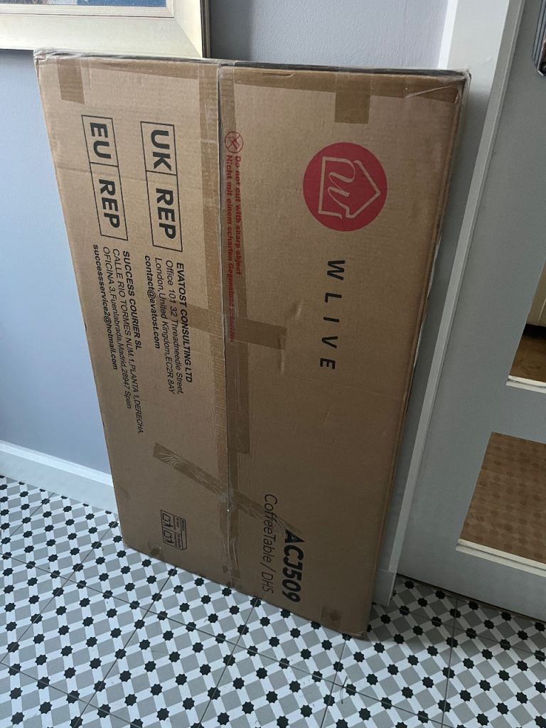 Bought from Amazon but it arrived very late. It’s still in the box as we had to make other arrangements. 100cm length x 55cm wide x 47cm height.