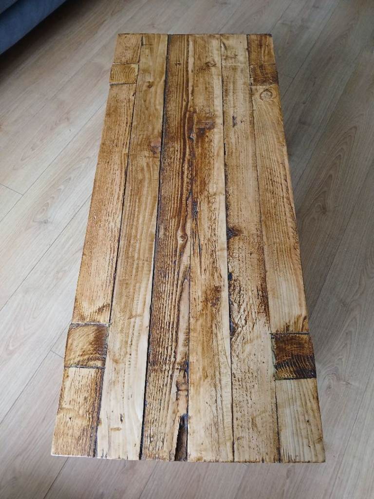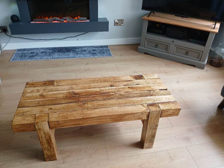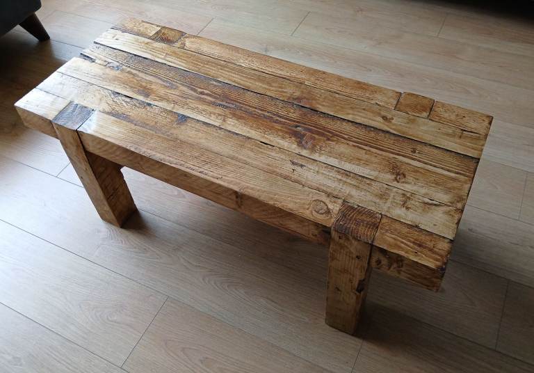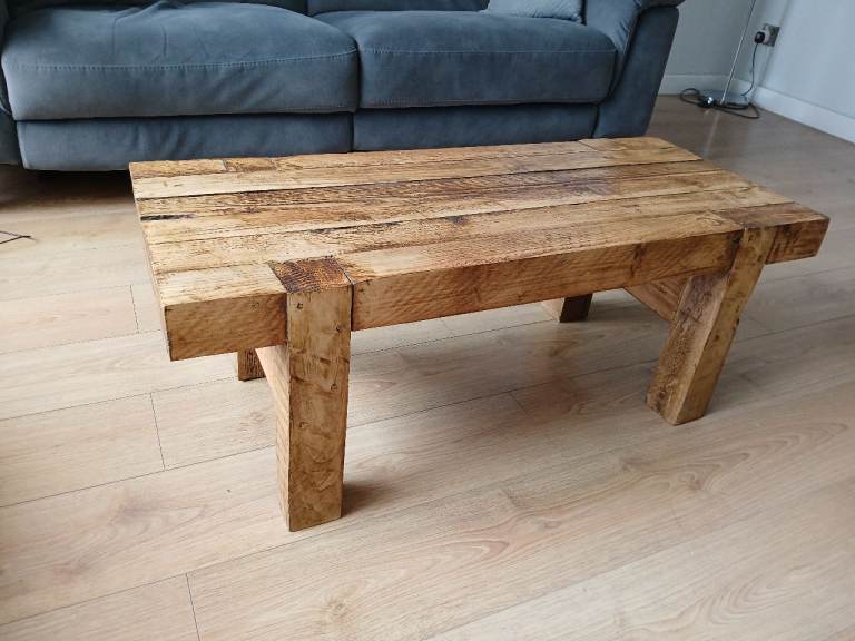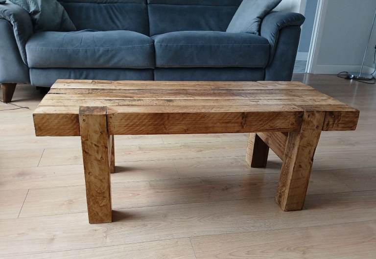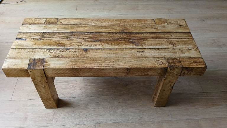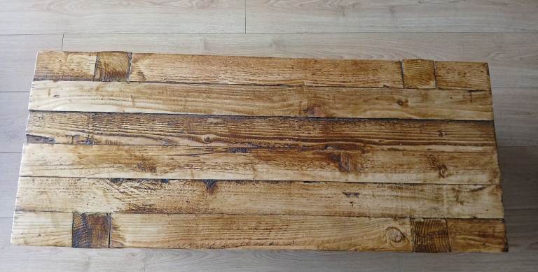 Solid wooden Rustic Coffee table, waxed in Old Pine to bring out to grain of wood.