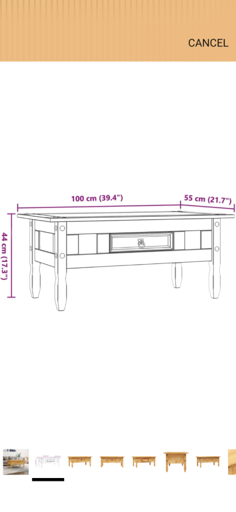 Coffee Table Mexican Pine Corona Range 100x55x44 cm
