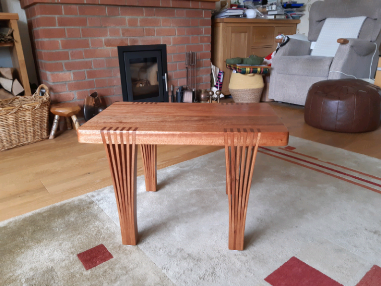 Solid mahogany handmade coffee table, unique design. 630mm long, 390mm wide, 410mm high. Hard wax oil finish.