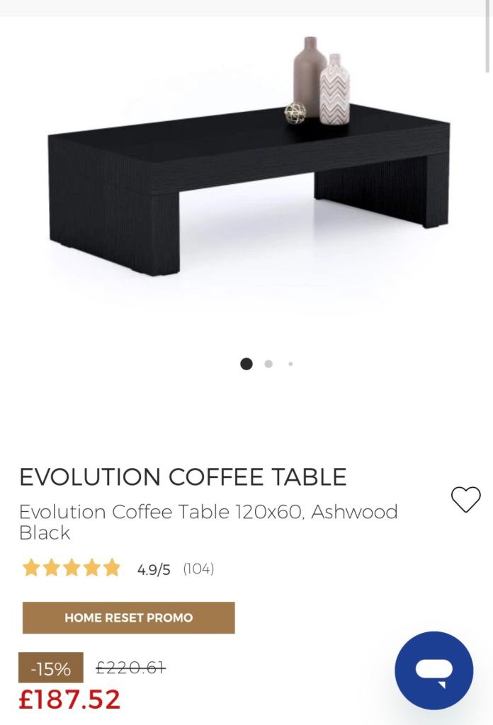 Ashwood black minimalist coffee table (Collection only) EVOLUTION COFFEE TABLE (mobili Fiver)