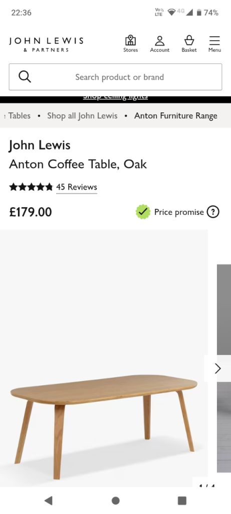 Large oak colour John Lewis Coffee Table. In really good condition. Only a couple of mark's after moving (see photos). Size's also on photos.