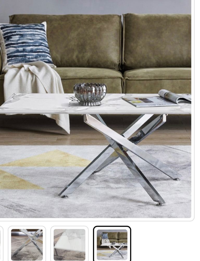Beautiful modern coffee table with a marble-effect top and chrome Silver legs .