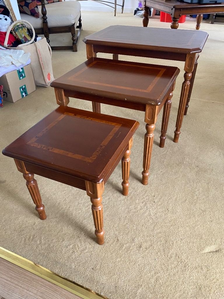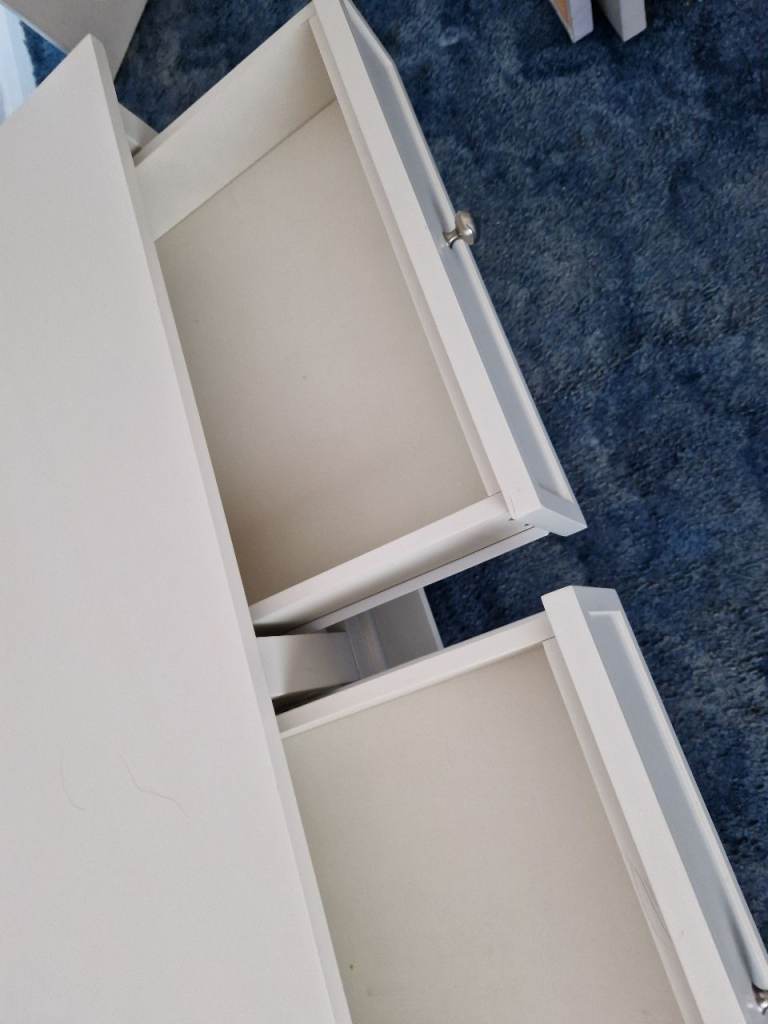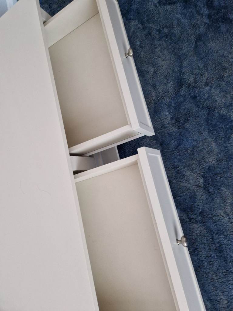 For sale. White coffee. Table. Strong. Wood. Heavy ish. Two draws sell for. £45. It was over £100. When bought.