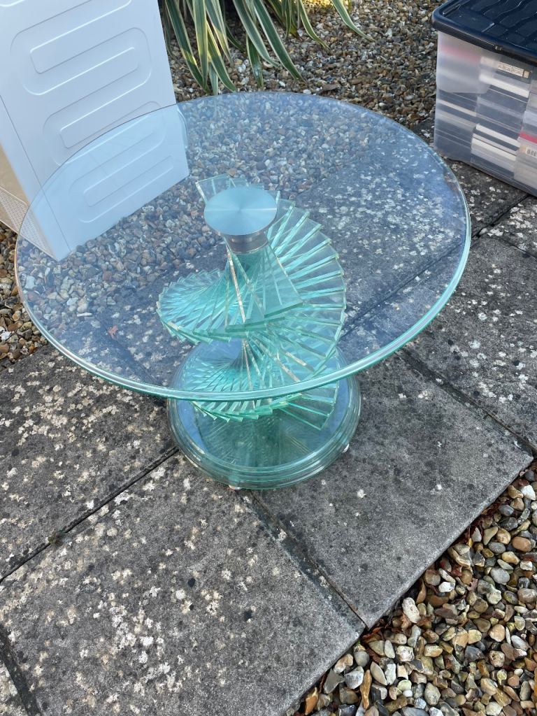 Designer Glass Side Tables – Sculptural Spiral Base – Matching Pair