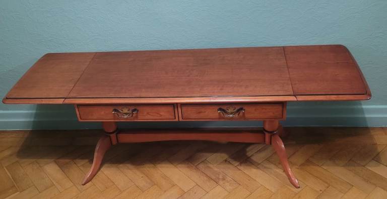 Lovely table with two handy drawers, very versatile can be used with the leaves up or down. Ideal for those Christmas nibbles.