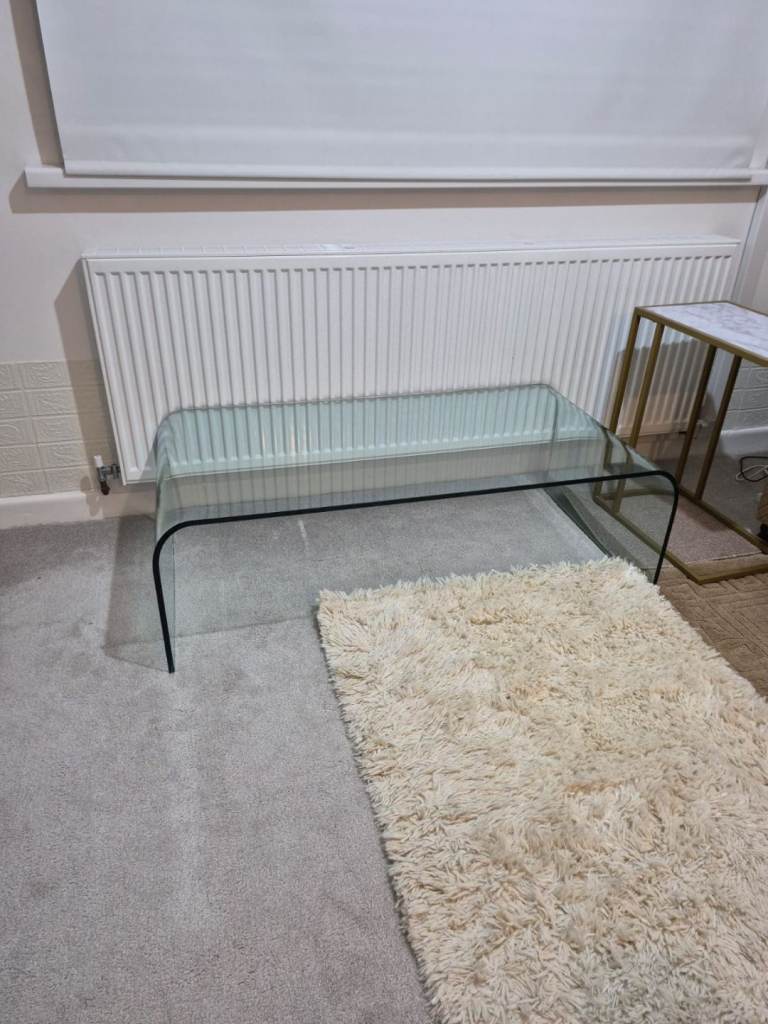Glass coffee table 4ft x 2ft 1980's Italian tempered glass minimalist 12mm thick