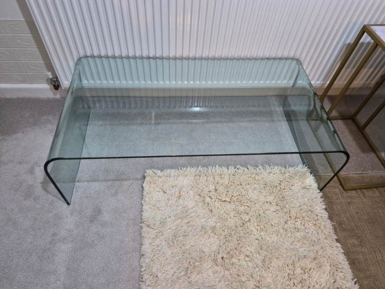 Glass coffee table 4ft length x 2ft width 1980's Italian tempered glass minimalist.