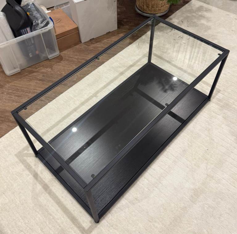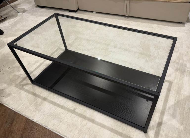 Modern coffee table with open storage/shelf, sturdy frame and clean, minimalist look. Perfect condition, no marks/scratches, from a smoke/pet-free home. Collection only from Greenwich (SE10). Sold as seen, already assembled (can be carried out in one piece). Dimensions: 100cm × 54cm ×42cm.
