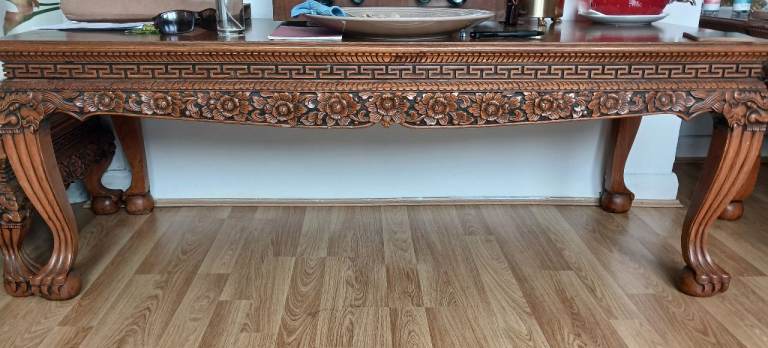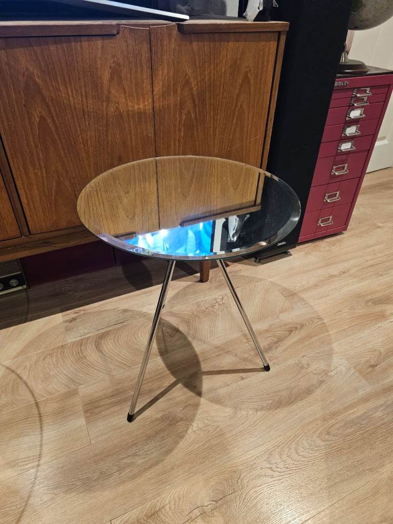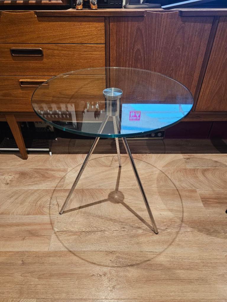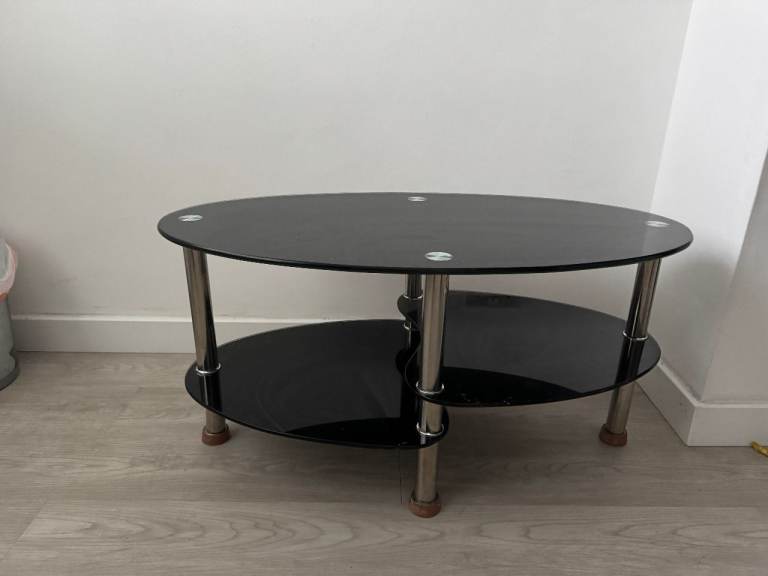 Beautiful glass coffee table for sale. And also 2 black counter stools.