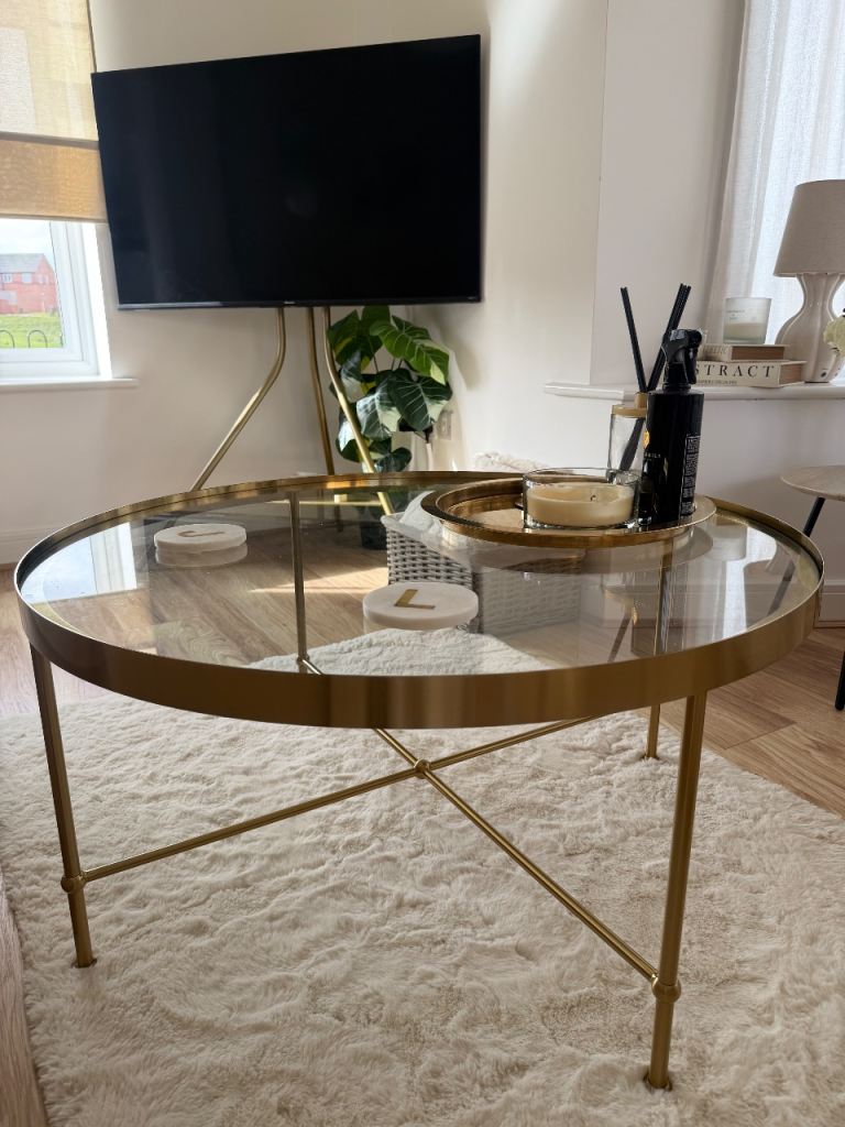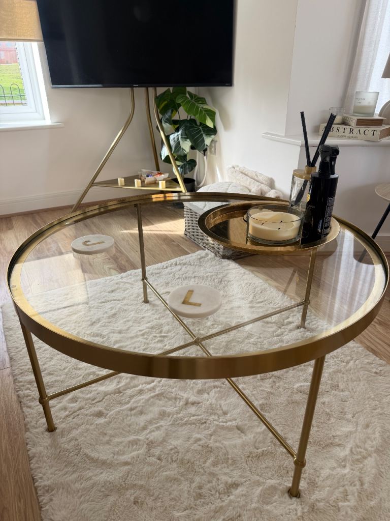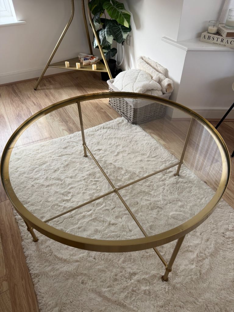 Ikea gold round coffee table. Purchased around 4 months ago for £99.