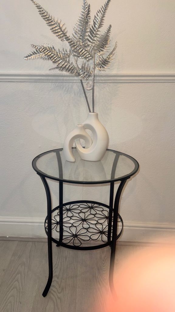 IKEA Glass Top Side/Coffee Table with Black Metal Frame Shelf