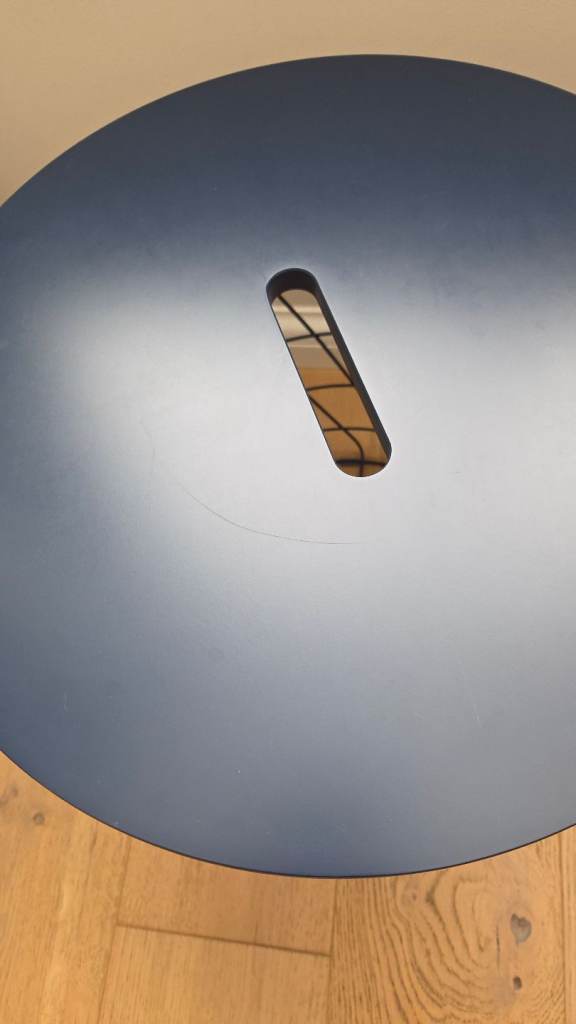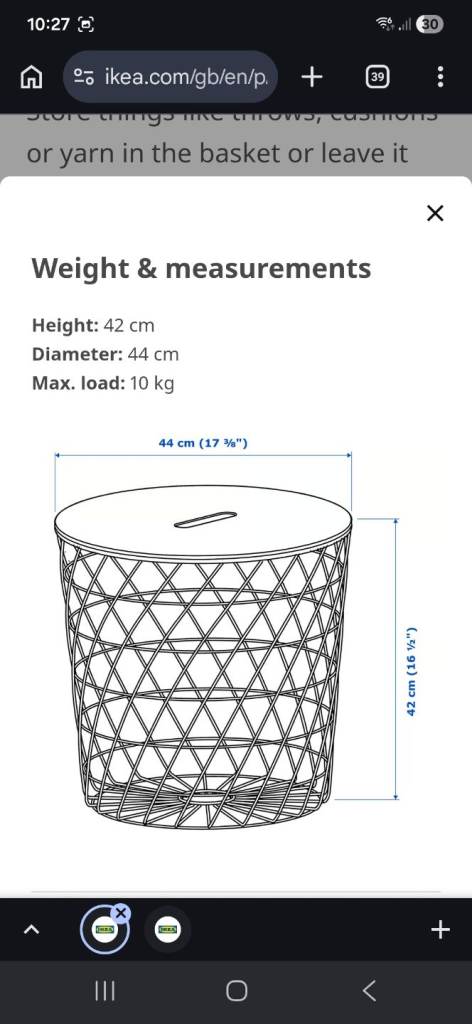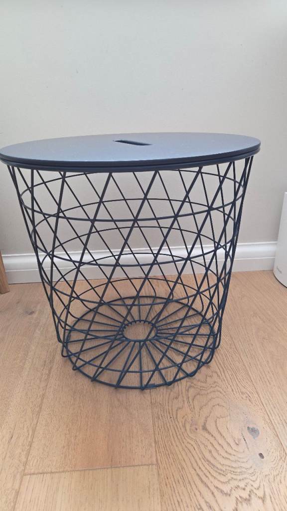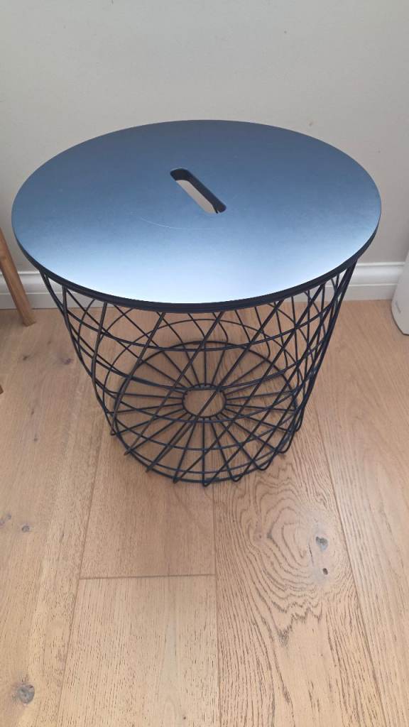 Small coffee table, side table, night table with storage. Dark blue steel basket and removable fibreboard top.