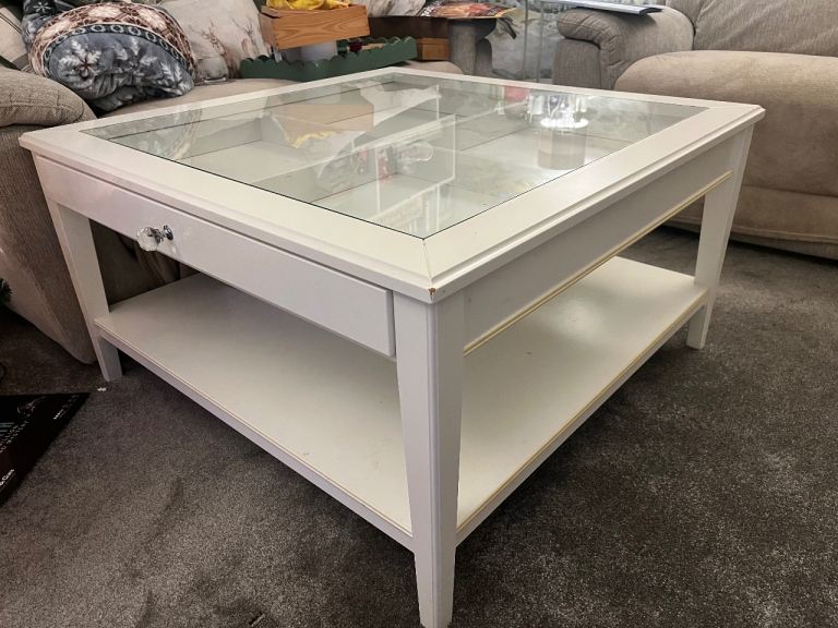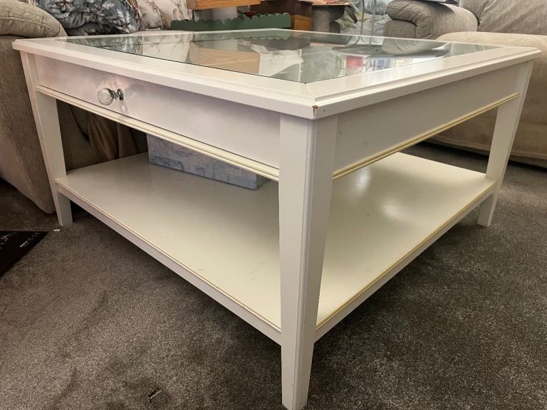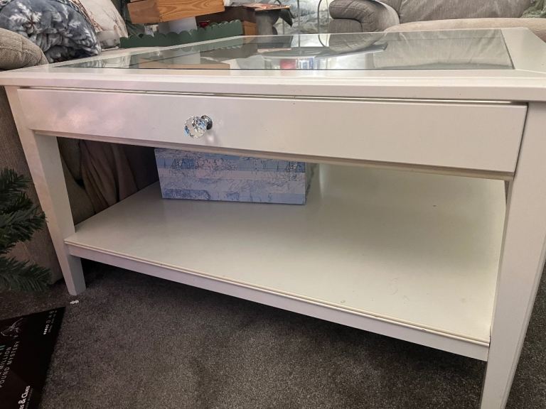 IKEA liatorp white coffee table. Used with a few marks (as per photos) which could easily be touched up or painted over - an ideal piece for upcycling but too big for my new living room
