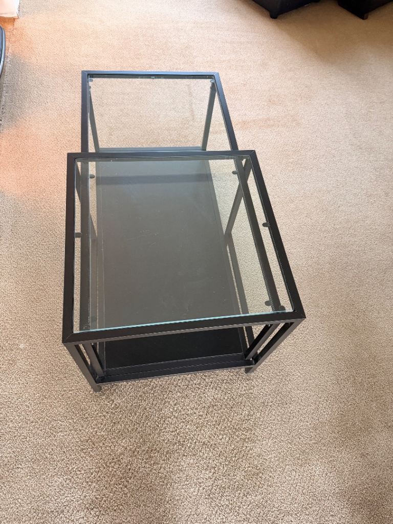 IKEA Glass Coffee Table Nest of 2 in Black. One rectangle table and one square table.